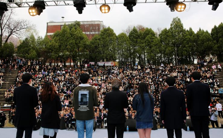우리 학교가 미래 교육에 대한 지향과 철학을 담은 중장기 발전계획 ‘아주비전 4.0’을 수립하고 이를 공표하는 비전선포식을 열었다. 비전선포식은 10일 노천극장에서 아주가족과 지역 주민들이 참석한 가운데 개최됐다. 우리 학교 개교기념일(4월12일) 주간을 맞아 진행된 벚꽃축제와 함께 마련되어 대학 구성원과 지역 주민들이 함께 어우러지는 만남의 장으로 구성됐다.비전선포식은 ▲비전 수립 경과보고 ▲축하 메시지 및 비전소개 영상 상영 ▲비전선언문 낭독·선포 순으로 진행됐다. 정다희 동문(영어영문 10)이 진행을 맡았다.최정주 기획처장이 무대에 올라 ‘아주비전 4.0’의 수립 배경과 경과에 대해 설명했고 축하 메시지는 ▲이재명 경기도지사 ▲염태영 수원시장 ▲박광온 국회의원 ▲김동연 전 아주대 총장(전 경제부총리 겸 기획재정부 장관)과 기부자, 재학생, 고교생의 이야기를 담았다. 아주대학교의 중장기 전략과 다짐을 알리는 비전 선언문 낭독에는 아주가족을 대표해 박형주 총장과 올해 입학한 신입생, 신임 교수와 직원들이 참여했다. 교수 대표로 ▲이재웅(물리학과), 오윤미(불어불문학과) 교수가 함께 했고 학생 대표로 ▲김주환(물리학과), 박영서(간호학과) 신입생이 무대에 올랐다. 신입 직원을 대표해 김성호(시설팀), 신민철(정보시스템팀) 직원이 참석했다. 식전 행사로 열린 비전나무 식수는 노천극장 옆에서 진행됐다. 박형주 아주대 총장, 유희석 아주대학교의료원장, 안창준 총동문회장과 김상배 교수회 의장(전자공학과 교수), 이기훈 총학생회장, 김주용 노조지부장이 함께 아주대학교의 발전을 염원하는 나무를 심었다.아주대학교는 대학의 나아갈 방향과 철학을 담은 대학 중장기 발전계획을 수립, 이를 ‘아주비전 4.0’으로 명명했다. ‘아주비전 4.0’은 1990년대 중반 이후 아주대학교가 추진해 왔던 교육개혁(1.0), 2003년에 수립한 ‘아주비전 4U(2.0)’, 2008년 수립한 ‘아주비전 2023(3.0)’을 발전적으로 연결하는 새로운 버전의 대학 발전계획이다. 더불어 Training(1단계)에서 Teaching(2단계), Learning(3단계), Creating Values(4단계)로 진화하는 고등교육 4번째 발전 단계로의 진입 및 4차 산업혁명으로 대변되는 미래 대학의 발전과 지속 가능성을 다짐하는 의미를 담았다. 학교는 ‘연결지성으로 세상을 변화시키는 대학’이라는 비전하에 교육과 연구, 산학협력과 캠퍼스 문화 등에 대한 향후 10년 청사진을 발전계획에 담았다. ‘연결지성’이란 이질적인 분야를 아우르고 다양한 사람들이 협동해 창조적·도전적으로 문제를 해결하는 역량을 뜻한다.‘아주비전 4.0’의 주요 5대 전략은 ▲자기주도형 Hi-interactive 교육 혁신 ▲High-impact 연구허브 구축 ▲산학협력 혁신 생태계 조성 ▲공유가치 창출 오픈 캠퍼스 실현 ▲연결지성 기반 구축 및 문화 확산이다. 박형주 총장은 “앞으로 다양한 구성 요소들의 독자성이 존중받으면서도 서로 협력하는 ‘연결의 시대’가 펼쳐질 것”이라며 “이질적 분야를 아우르고 창조적·도전적으로 문제를 해결해나가는 인재를 배출하기 위해 앞으로 10년의 과제를 담아 대학 중장기 발전계획을 마련하게 되었다”고 전했다.