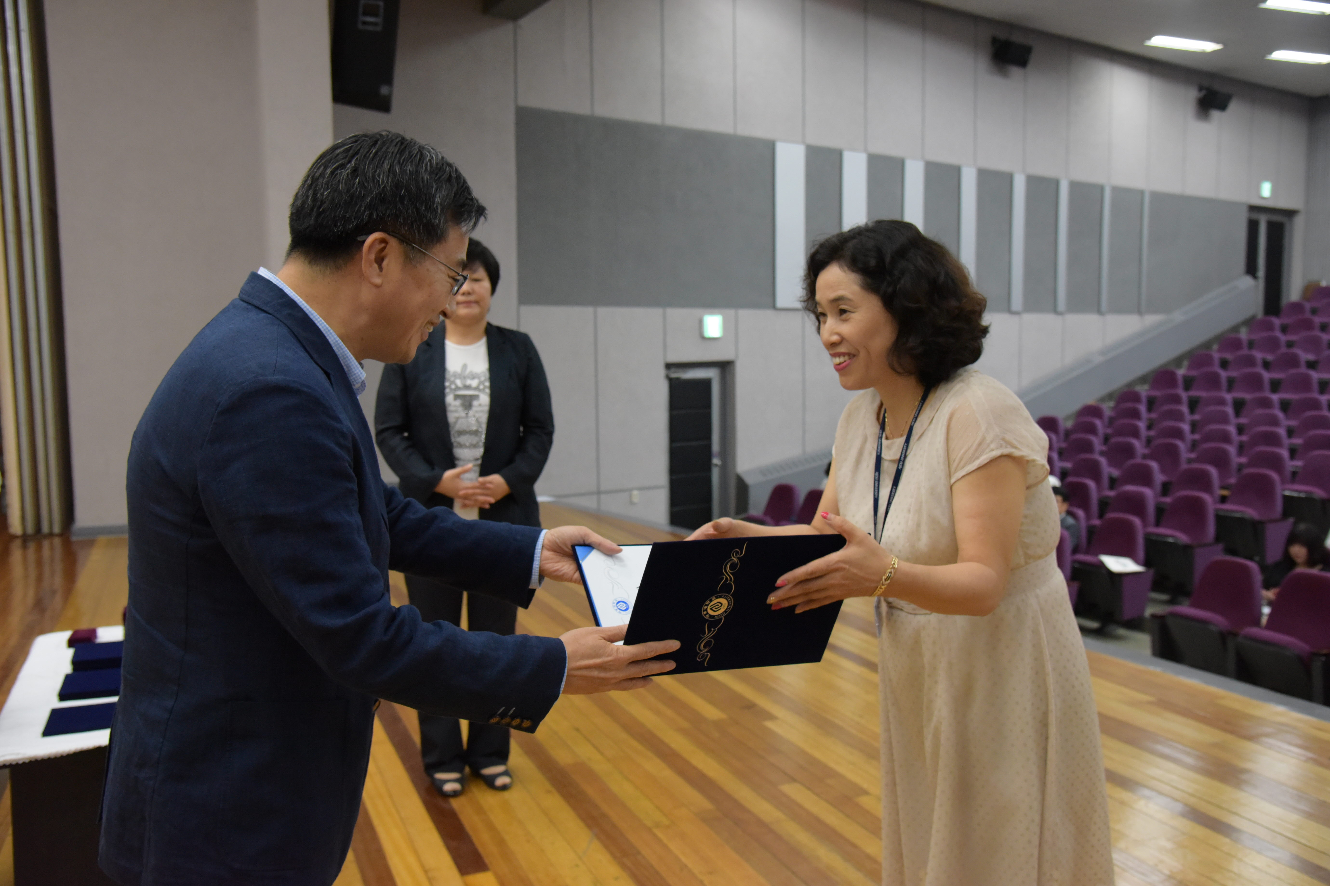 2일 율곡관에서 근속 교원에 대한 포상이 진행됐다. 10년·20년·30년 동안 우리 학교에서 근무한 교원 총 47명이 포상 명단에 포함됐다. 제1회의실에서 열린 표창장 수여식에는 포상 대상자 8명과 최경희 산학부총장, 임석철 교무처장이 자리했다. 최경희 산학부총장이 직접 표창장과 부상을 수여했다. 행사에는 20년 동안 근속한 박범 산업공학과 교수, 전영목 수학과 교수, 한봉희 경영학과 교수와 10년 근속 강지혜 영어영문학과 교수, 김기형 정보컴퓨터공학과 교수, 김현희 미디어학과 교수, 석혜정 미디어학과 교수, 성민제 경영학과 교수가 참석했다. 올해 근속 표창 대상자는 총 47명으로 30년 근속 6명, 20년 근속 14명, 10년 근속 27명이다. 대상자 명단은 아래와 같다. ◆30년 근속 김영길(전자공학과) 송현호(국어국문학과) 유재석(기계공학과) 조순행(환경공학과) 조영호(경영학과) 최연익(전자공학과) ◆20년 근속 김봉철(사학과) 김태승(사학과) 김흥식(행정학과) 박범(산업공학과) 안재흥(정외과) 윤원식(전자공학과) 이원희(법학전문대학원) 이재천(대학원 시스템공학과) 이창환(경영학과) 전영목(수학과) 채장범(기계공학과) 최기주(교통시스템공학과) 한봉희(경영학과) 홍민성(기계공학과) ◆10년 근속 강지혜(영어영문학과) 김기형(정보컴퓨터공학과) 김서용(행정학과) 김지은(미디어학과) 김현옥 (영어영문학과) 김현희(미디어학과) 김효동(미디어학과) 문우진(정외과) 박만규(불어불문학과) 박지용(물리학과) 석혜정(미디어학과) 성민제(경영학과) 신강현(심리학과) 신현준(미디어학과) 신희천(심리학과) 오규환(미디어학과) 원동철(금융공학과) 유정훈(교통시스템공학과) 이기근(전자공학과) 이재진(전자공학과) 이종수(생명과학과) 이홍재(경영학과) 장우진(미디어학과) 조위덕(전자공학과) 좌동경(전자공학과) 차희성(건축학과) 최희갑(경제학과)