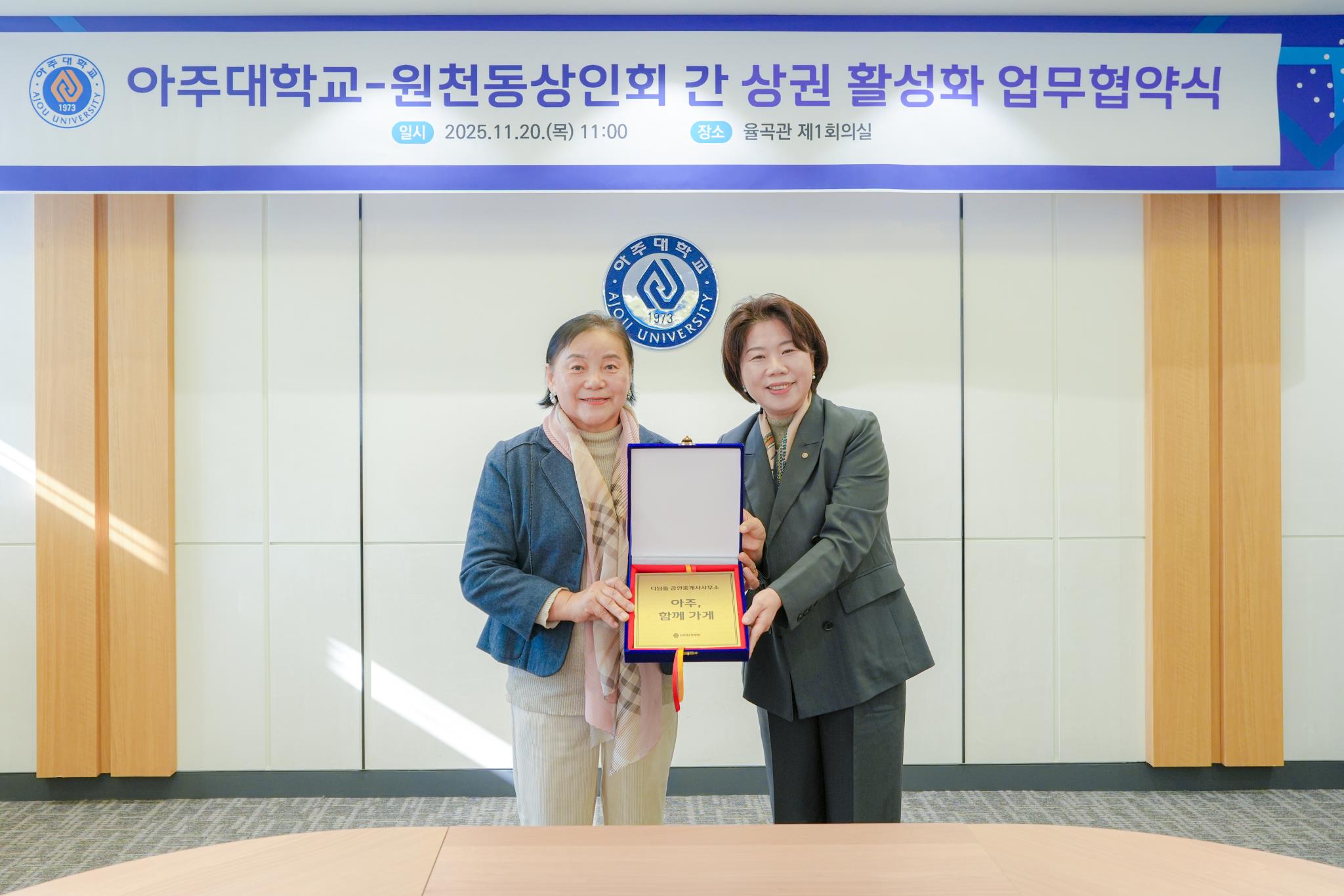 아주대학교가 수원시 원천동 상인회와 아주대 앞 상권 활성화를 위한 업무 협력을 체결했다.