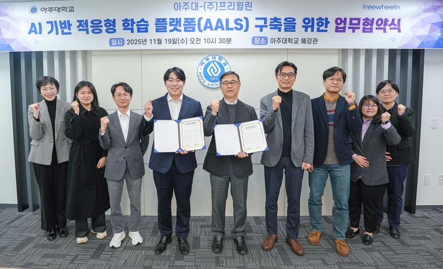 (사진) 아주대는 국내 AI 코스웨어 기업인 프리윌린과 업무협약을 맺고 AALS 플랫폼을 구축하기로 했다