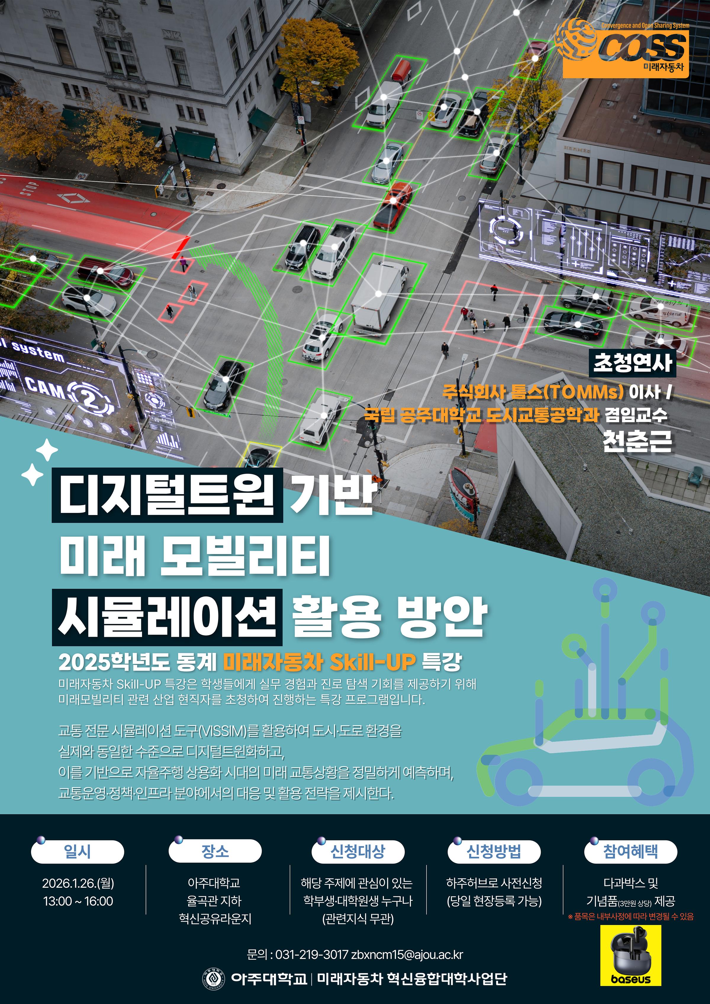 [비교과] [미래자동차 Skill-UP 특강]"디지털트윈 기반 미래 모빌리티 시뮬레이션 활용방안" 신청 안내