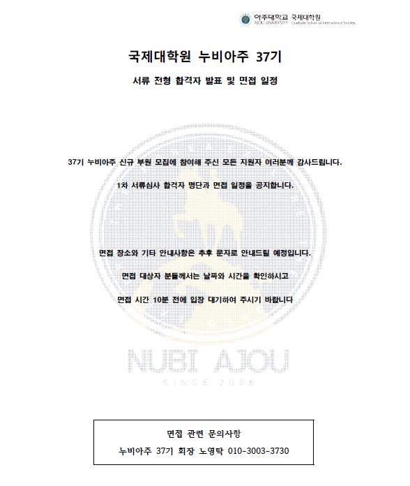 [비교과] [국제대학원] 누비아주 37기 1차 합격자 발표