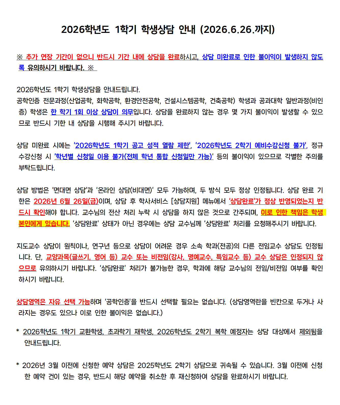 [공지] [학부-필독] 2026-1학기 학생상담 안내(~2026.06.26)